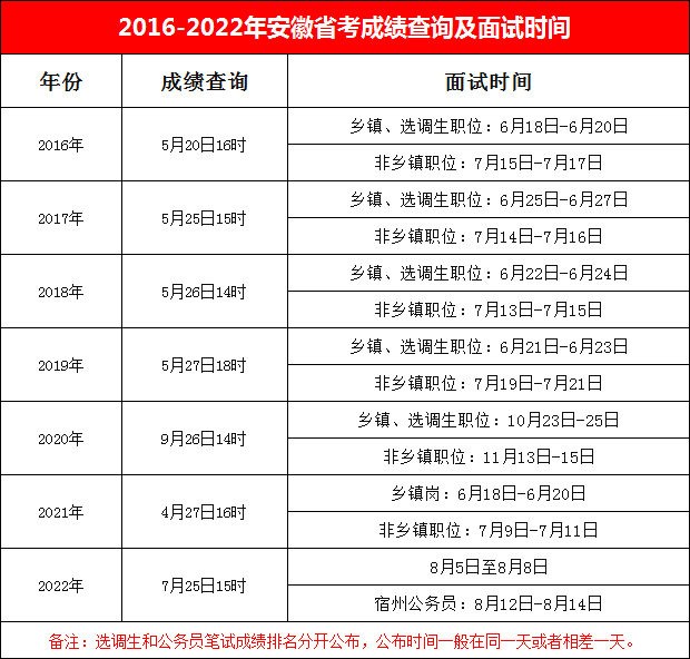 2016-2022年安徽省公務(wù)員成績(jī)查詢及面試時(shí)間匯總