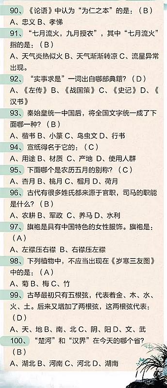 2018年公務(wù)員考試必看:100道中國(guó)文化知識(shí)題