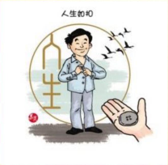 4、漫畫(huà)題:一個(gè)人衣服上的扣子,扣子是錯(cuò)開(kāi)的。漫畫(huà)標(biāo)題是人生如扣,談?wù)勥@個(gè)漫畫(huà)對(duì)你的啟示。