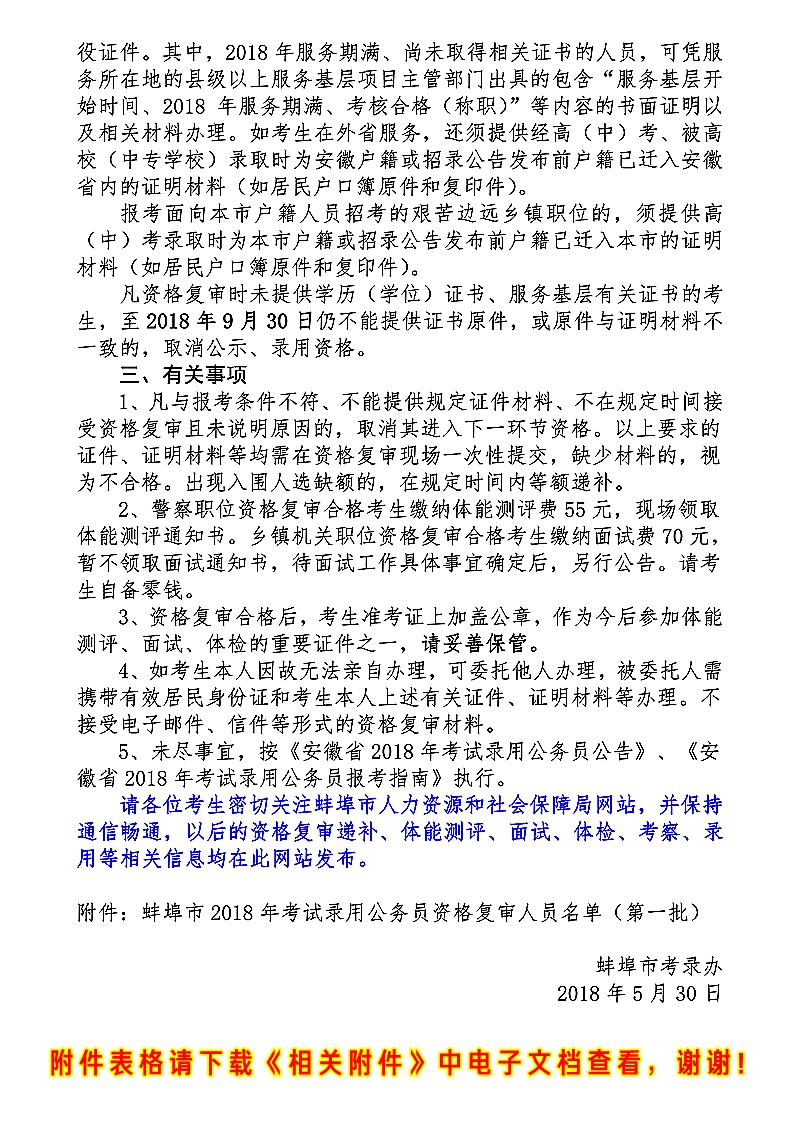 點擊下載:蚌埠市2018年考試錄用公務員資格復審人員名單(第一批)