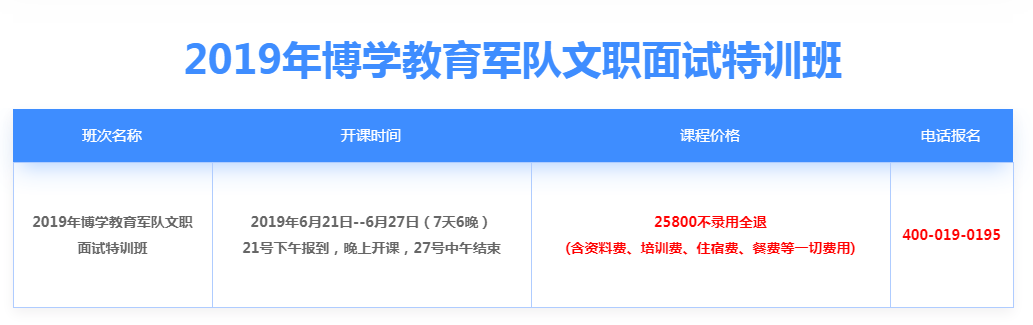 2019年博學(xué)教育軍隊(duì)文職面試特訓(xùn)班簡章(點(diǎn)擊查看詳情)